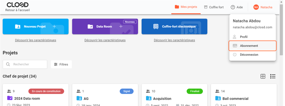 Pour désigner un Abonné comme nouvel Administrateur, vous devez vous rendre dans la zone Abonnement.