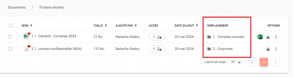 Vous pouvez également visualiser facilement ces nouveaux documents dans leurs dossiers respectifs grâce à une pastille rouge qui s’affiche temporairement à droite du nom du document.