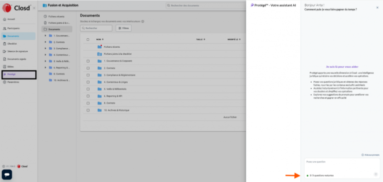 Avec l’abonnement Premium : Tous les utilisateurs inclus dans votre abonnement Closd (Legal Project et Data Room) bénéficient d’un accès complet à cette fonctionnalité, sans aucune restriction.