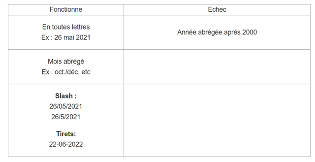 L'assistant à ce jour reconnaît ces formats de référence :