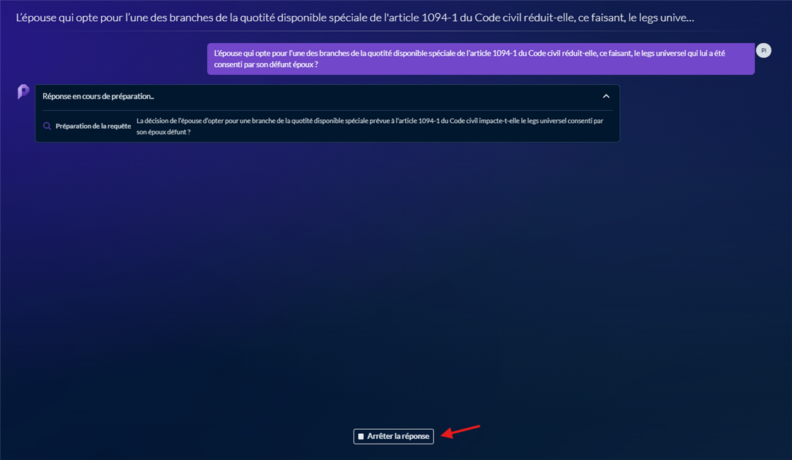 Si vous souhaitez reformuler votre prompt vous pouvez arrêter la génération de la réponse pour directement modifier votre prompt.