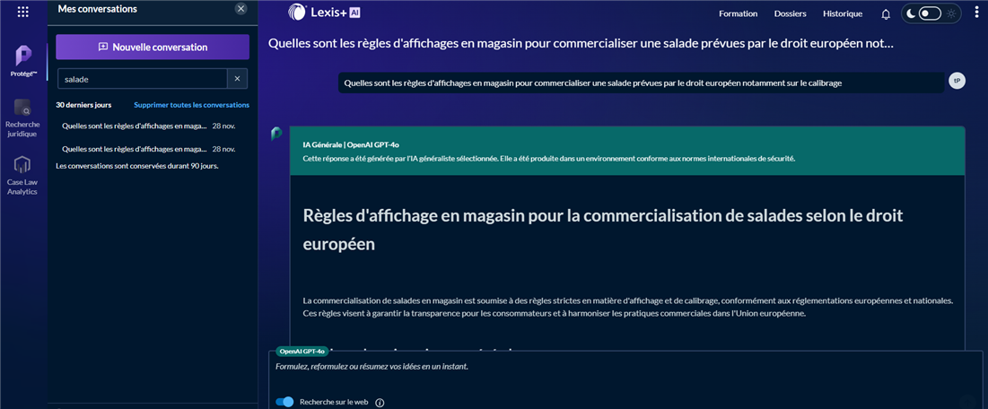 Les modèles peuvent générer des informations provenant de tiers. Il est donc important de vérifier les résultats. Lorsque la réponse contient du contenu issu de LexisNexis ou vérifié par nos équipes, des citations sources sont automatiquement fournies.