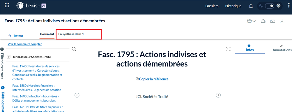 Sur de nombreux contenus sur Lexis+, vous bénéficiez d'un accès direct depuis un document à une sélection éditorialisée de références utiles.