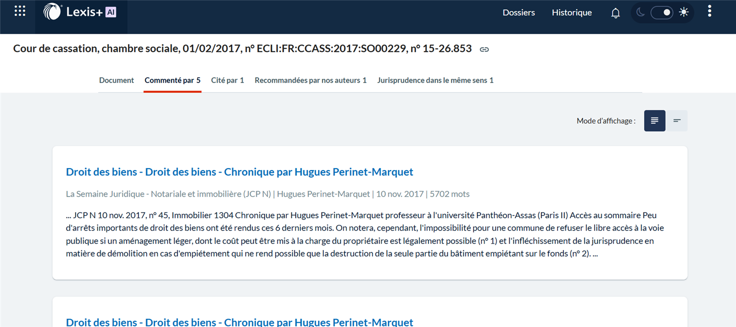 Pa exemple lors d'une consultation d'une décision de justice, vous avez systématiquement accès aux différents enrichissements liés :