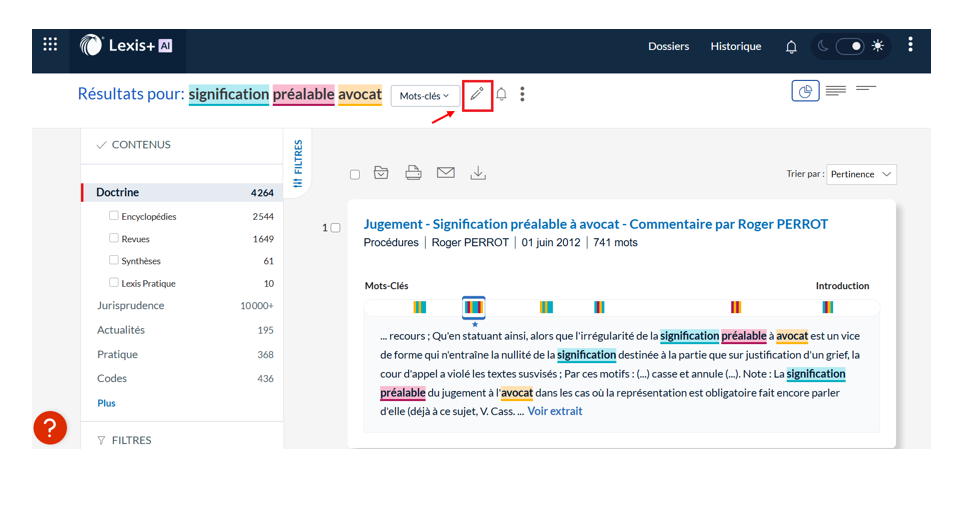 1. Cliquez sur le pictogramme ‘crayon’ dans le champ de recherche au-dessus de la liste des résultats. Les termes de votre recherche actuelle apparaissent dans le champ de recherche.