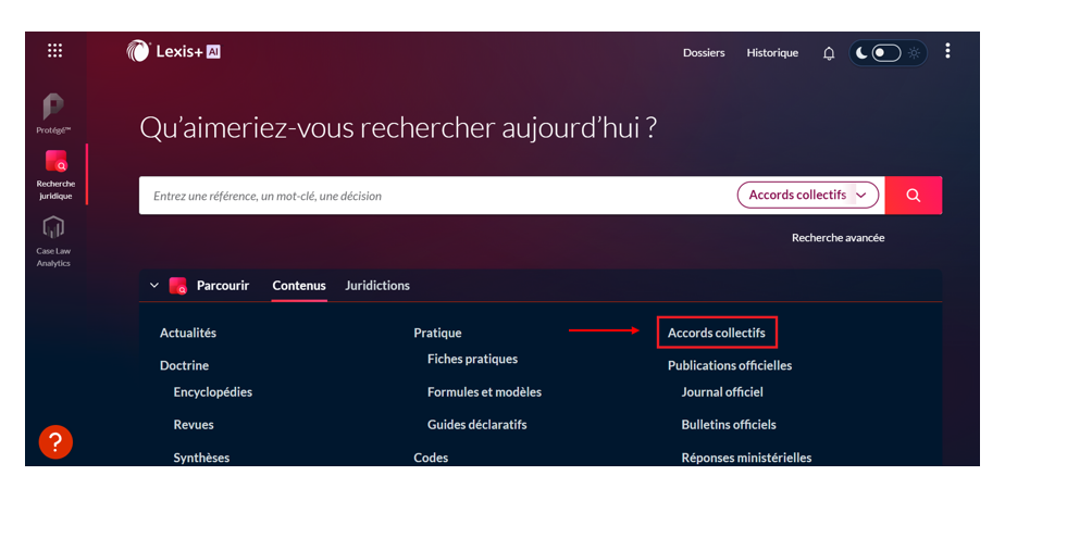 Sur Lexis+, vous accédez aux conventions collectives depuis la page d'accueil,