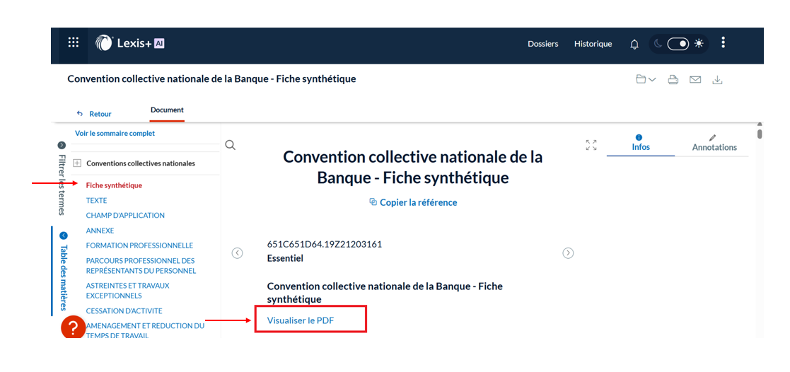 Par exemple pour la convention collective banque, saisissez dans la barre de recherche le nom et filtrez directement dans Accords collectifs